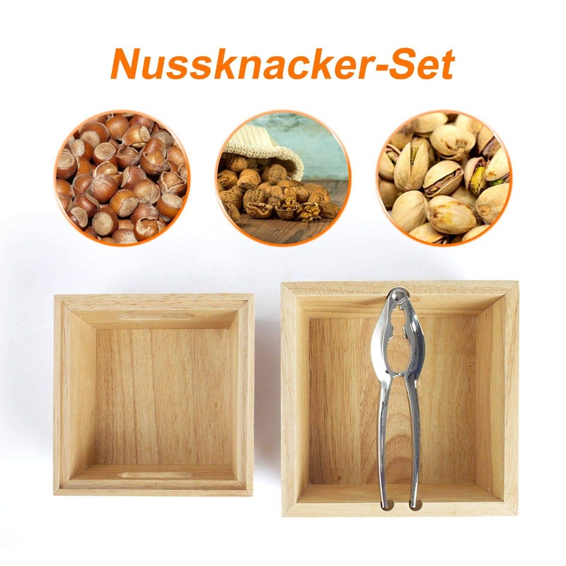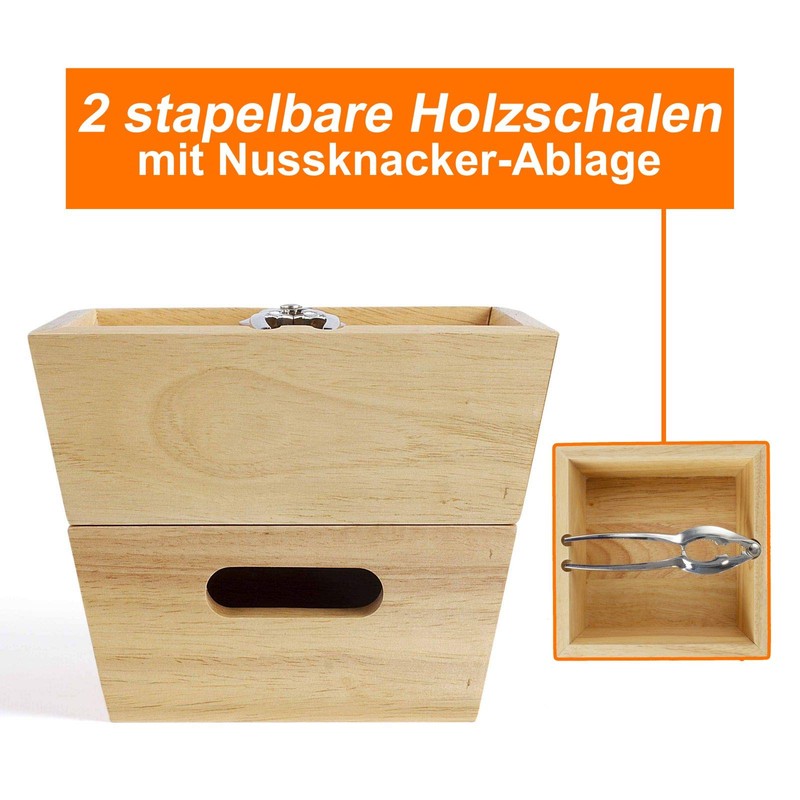 Nutcracker Set - Nutcracker Set with 2 Bamboo Bowls for Serving - Nut Cracker with Stackable Serving Bowls Suitable for Different Nuts