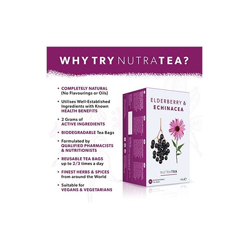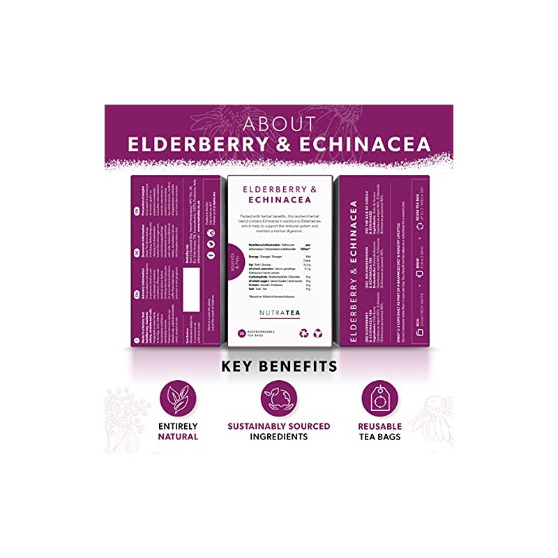 Nutra Tea - Elderberry & Echinacea Tea | Elderberry Tea - Immunity Tea | Immu...
