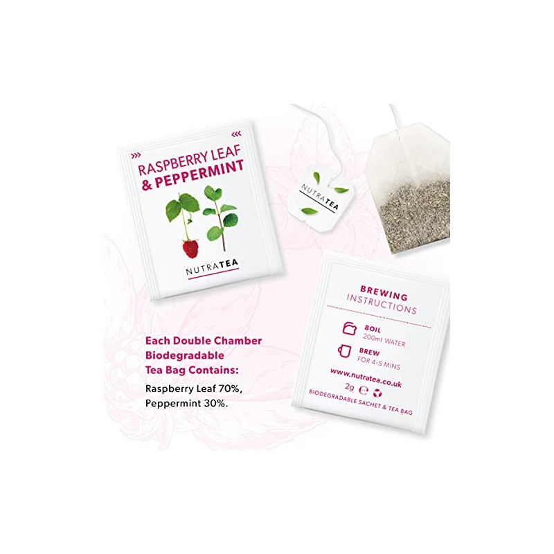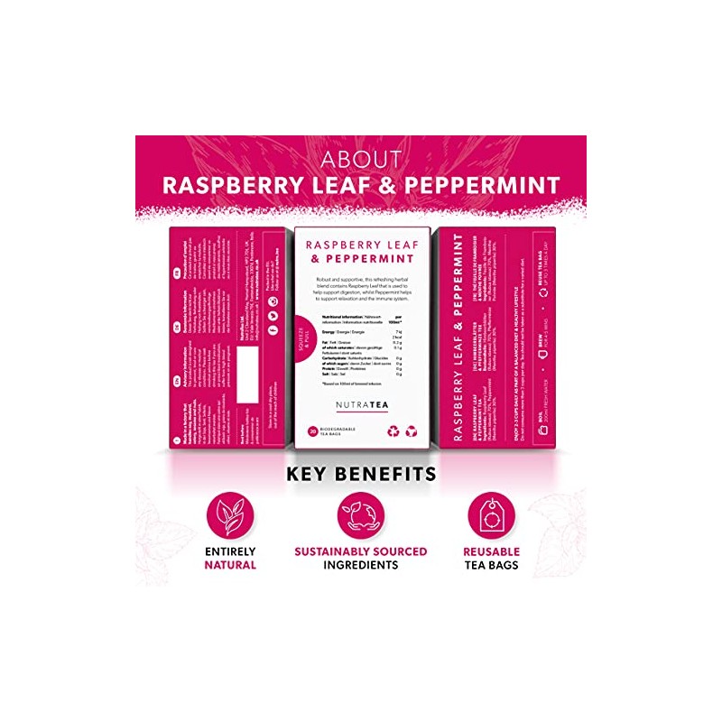 Nutra Tea - Raspberry Leaf & Peppermint Tea - Raspberry Leaf Tea For Pregnancy & Expectant Mothers - 20 Tea Bags - Herbal Tea - (1 Pack)