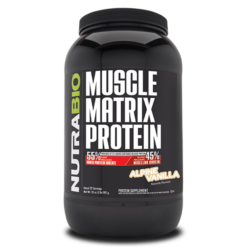 • ULTIMATE POST WORKOUT RECOVERY ?NutraBio Muscle Matrix utilizes a blend of pure Whey Isolate and Micellar Casein. Isolate rapidly feeds your muscles while Casein maintains muscle growth for hours.