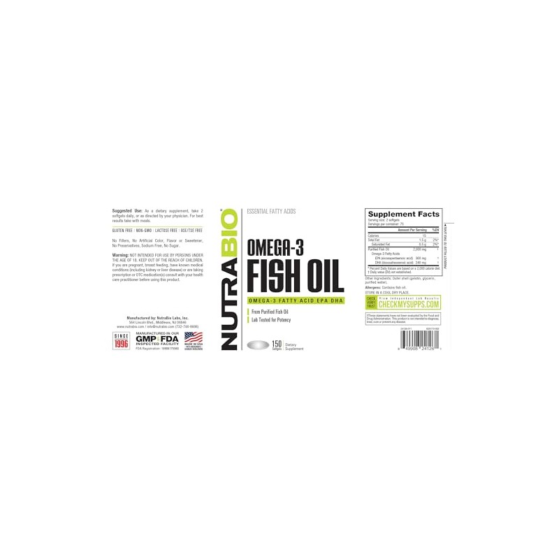 NutraBio - Nutrabio Omega 3 Aceite de Pescado - 150 Capsulas Blanda - 75 Ser - 2000 mg de Omega 3 ácidos grasos esenciales por Servicio con 360 mg de EPA y 240 mg de DHA - Sin Gluten - Sin GMO - Libre de EET/EEB. ✅ Diseño innovador que supera las expectativas. Construcción robusta y atención al detalle. 💎 Calidad superior certificada. Ideal para quienes buscan lo mejor en calidad y estilo. Producto auténtico con satisfacción total asegurada. ¡No te quedes sin el tuyo y aprovecha esta oportunidad única!