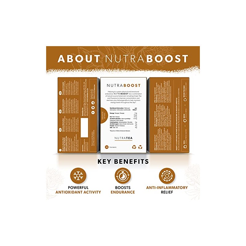 NUTRABOOST - Energy Tea | Focus Tea – Includes Astragalus, Ashwagandha & Gotu Kola - Naturally Caffeine-Free and Sugar-Free - 20 Enveloped Tea Bags - by Nutra Tea - Herbal Tea