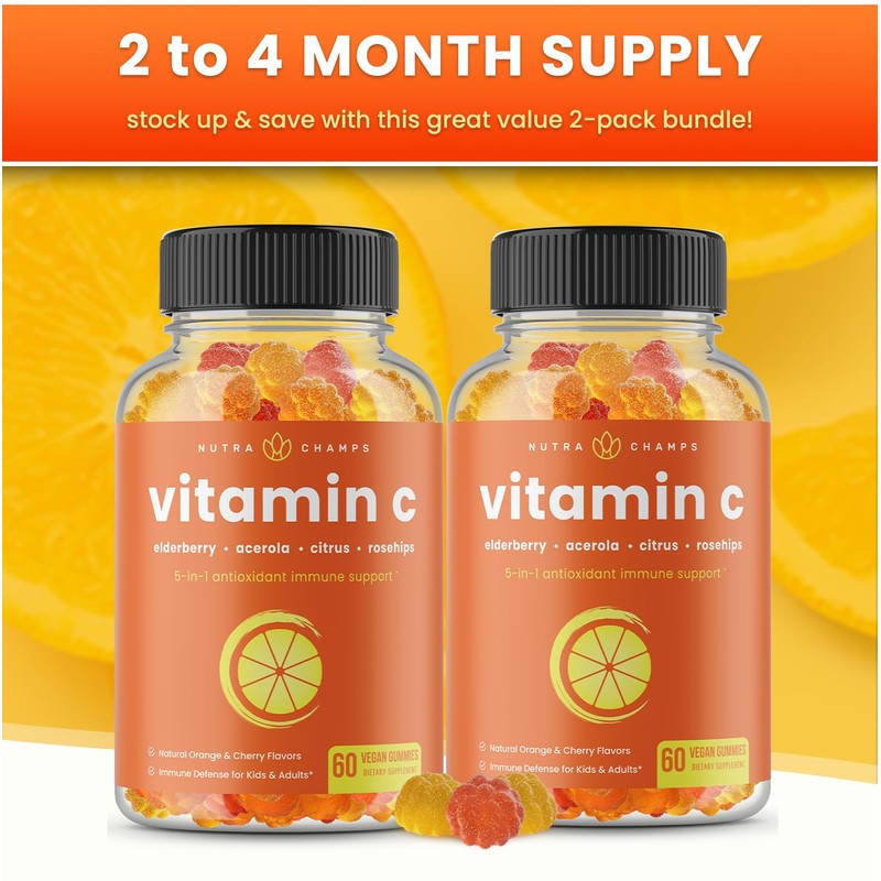 - Bundle & Save - NutraChamps best-selling gummy vitamins are now available in a bundle! Enjoy the (2-Pack) Vitamin C Gummies and Elderberry Gummies Bundle at even better prices!