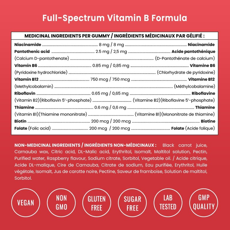 - Advanced B Complex for Total Wellness C This full-spectrum formula contains all 8 essential B vitamins in a convenient gummy format, providing a comprehensive boost for brain health, immune function, and cellular energy production.