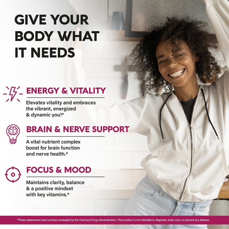 - Energy, Brain & Heart Support – Vitamin b-complex supplements for men & women are crafted to support your brain and nerve functions to stay sharp, focused, and mentally excellent. Let your intelligence shine with sustained brain and nerve support! The robust mix of liquid vitamin b complex with Pantothenic Acid B5 & Vit B12 ensures your immune system can handle life's challenges!
