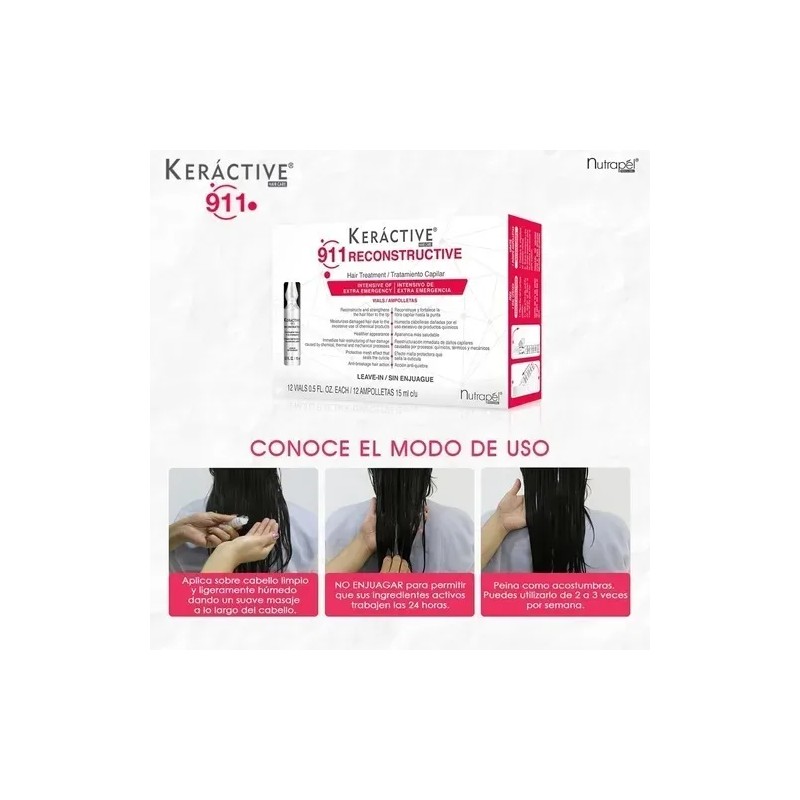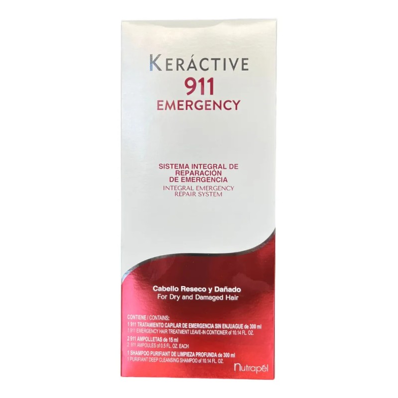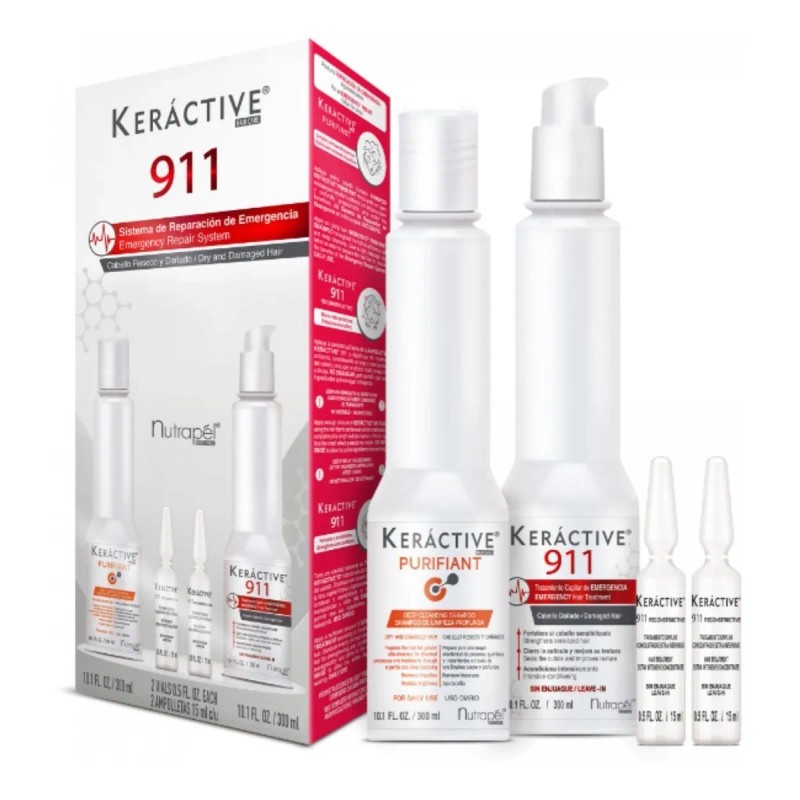 Nutrapel Keráctive 911 Sistema Integral de Reparación Shampoo300 ml+ Tratamiento 300 ml + Ampolletas 2x15ml