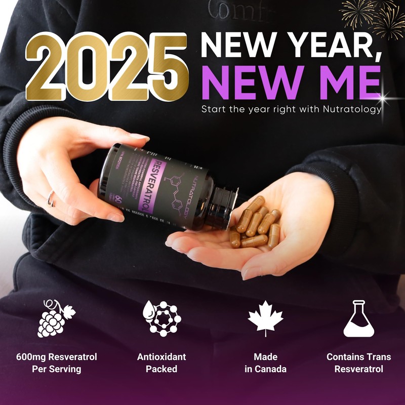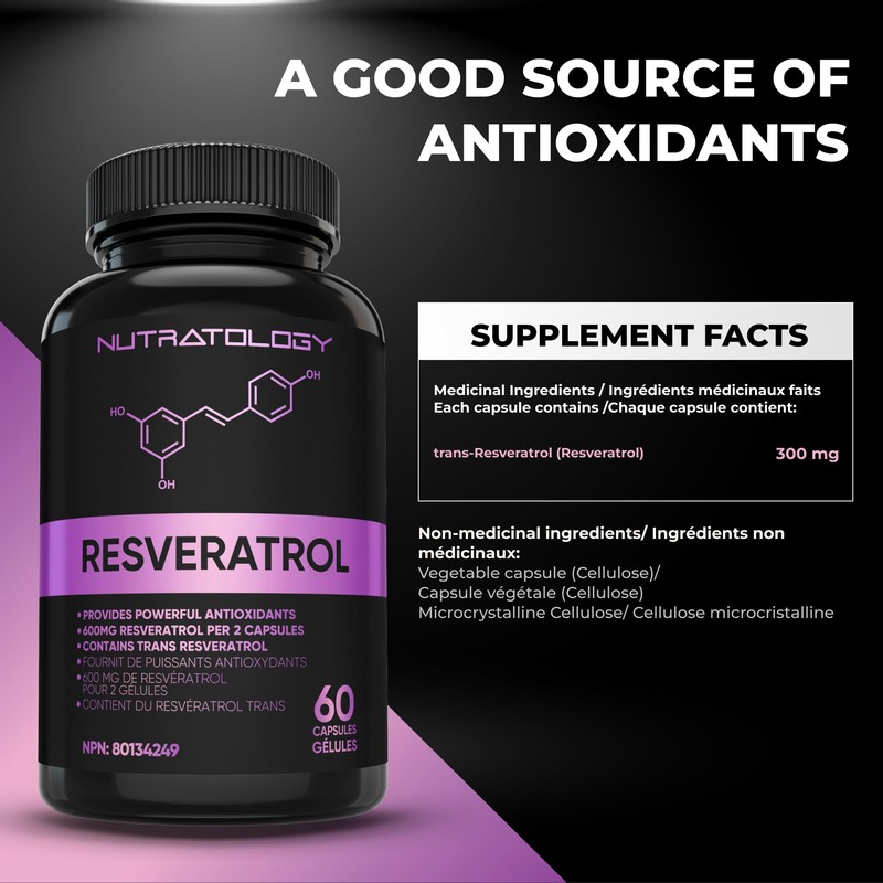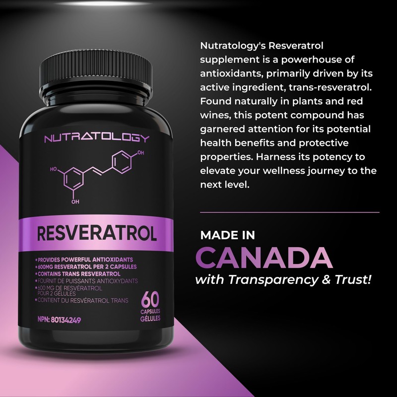Nutratology Nutratology Resveratrol Supplement - 600MG Per 2 Capsules - Antioxidant Supplement - Anti Aging Trans Resveratrol - Increases Cardiovascular Health, Cell Regeneration+Hair Growth - 60 Caps
