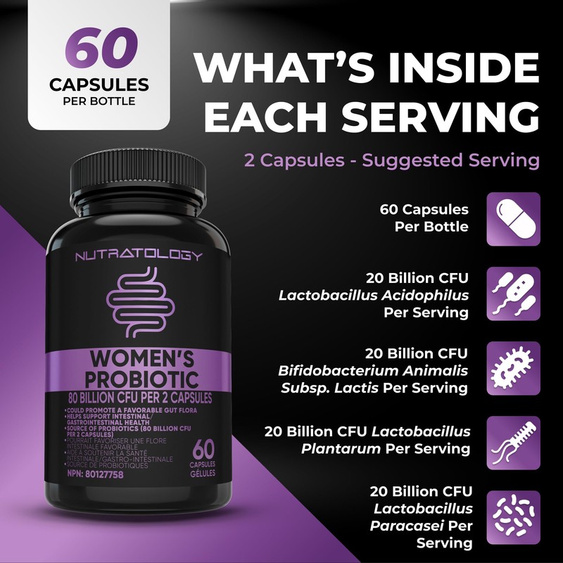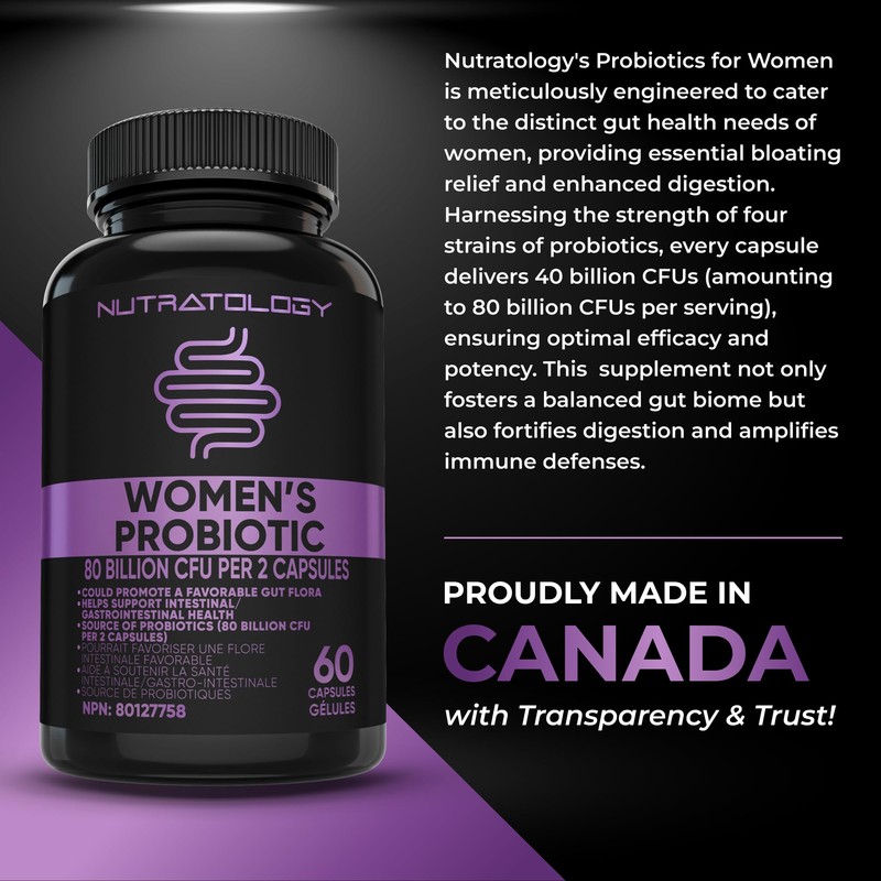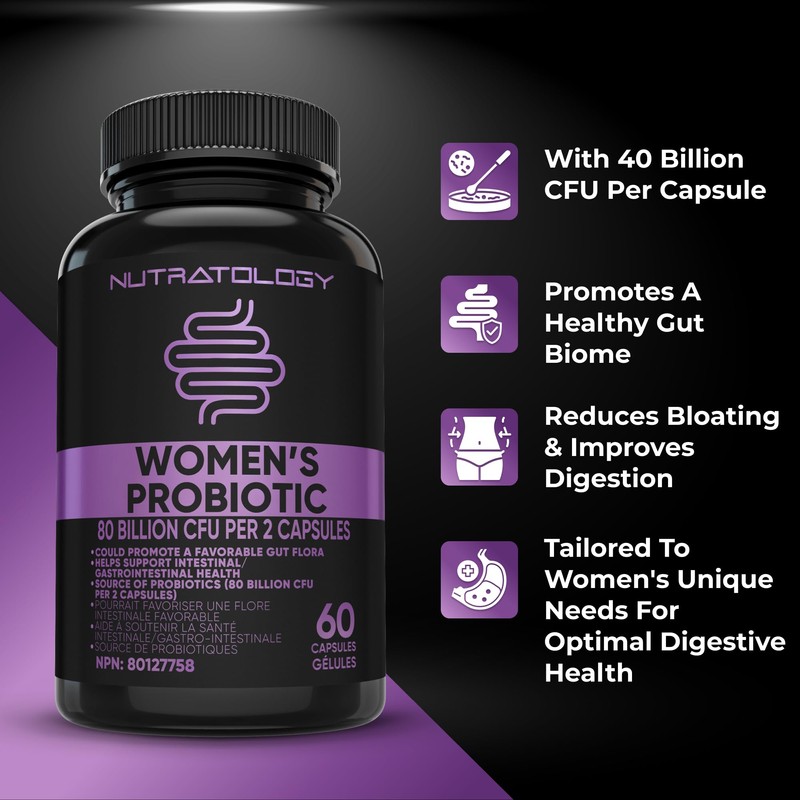 Nutratology Probiotics for Women - 40 Billion CFUs Per Capsule - 80 Billion CFUs Per Serving - Formulated With 4 Strains Of Probiotics To Support Gut Health, Bloating Relief & Digestion - 60 Capsules