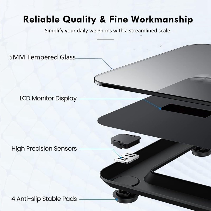 - High Accuracy: 4 high-precision G sensors ensure an accuracy of +/- 0.2 lb and stable readings; supports a weight of up to 330 lb/150 kg.