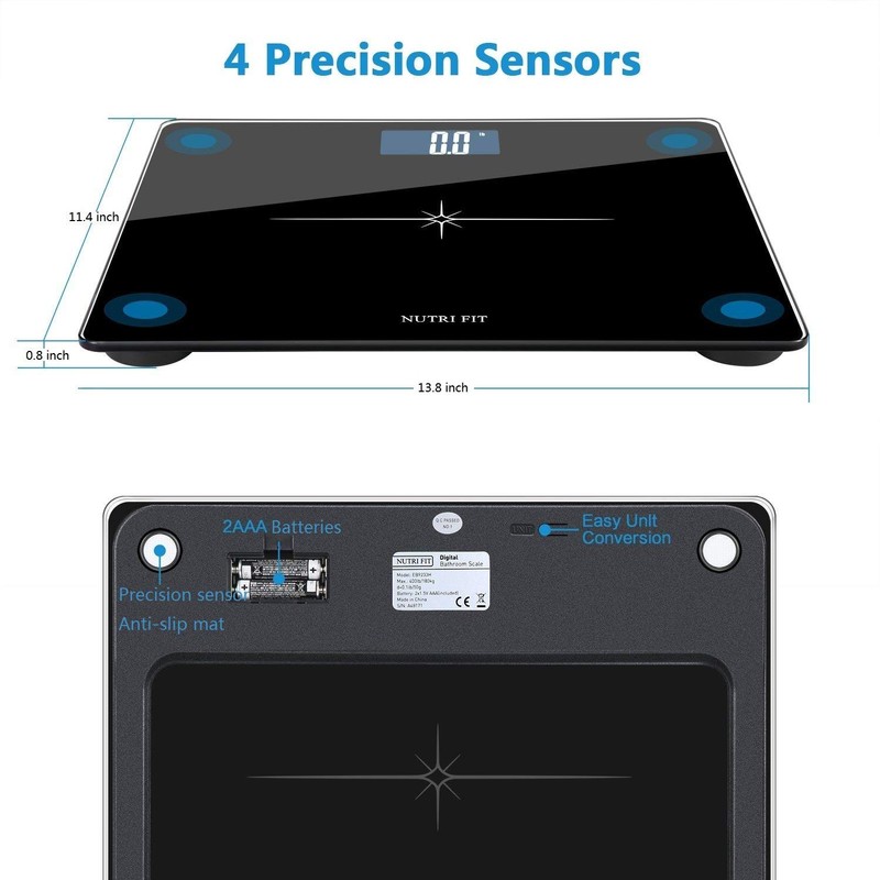 - Extra Wide Platform- Erxtra Wide Suiface and Ultra-Think 6mm Tempered Glass for Weight Up to 180kg(400lb); Also Provide an Accuracy of +/- 50g(0.1lb) and Stable Readings.