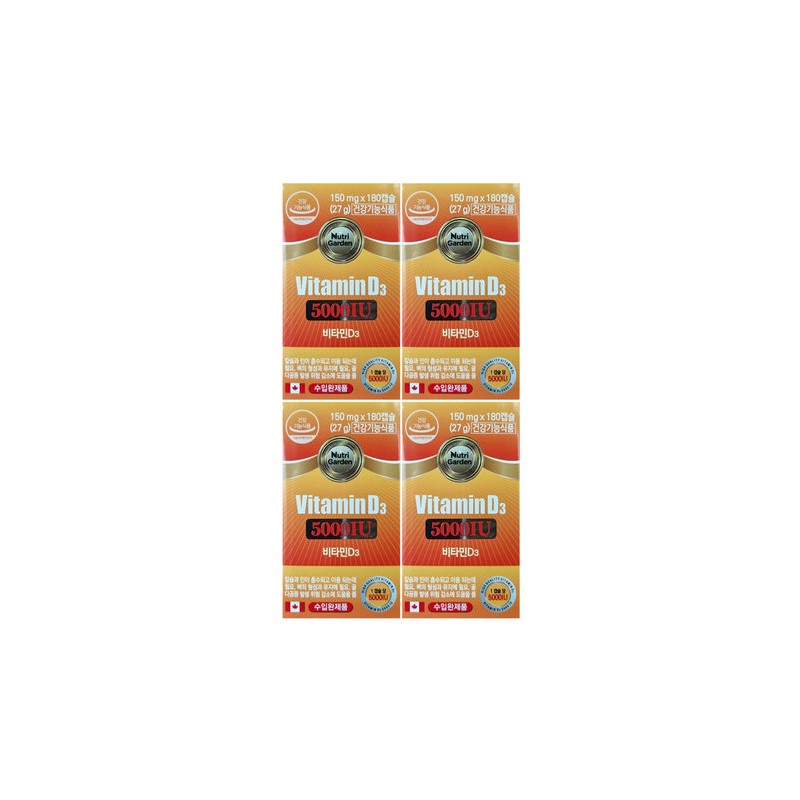 Nutri Garden Vitamin D3 5000IU 150mg x 180 capsules x 4 / Genuine / 뉴트리가든 비타민D3 5000IU 150mg x 180캡슐 x 4개 / 정품