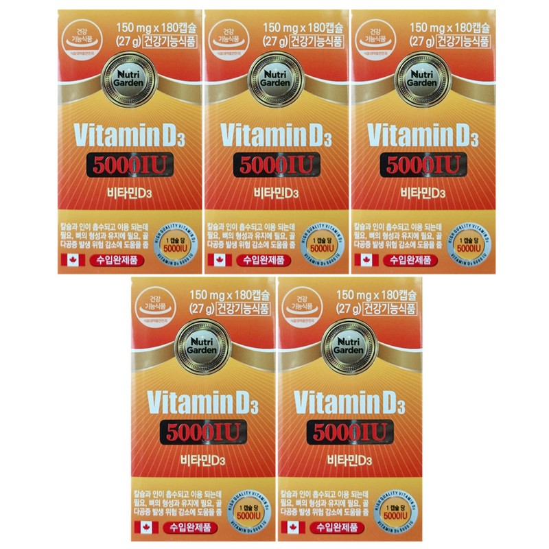 Nutri Garden Vitamin D3 5000IU 150mg x 180 capsules x 5 / Circle / 뉴트리가든 비타민D3 5000IU 150mg x 180캡슐 x 5개 / 써클