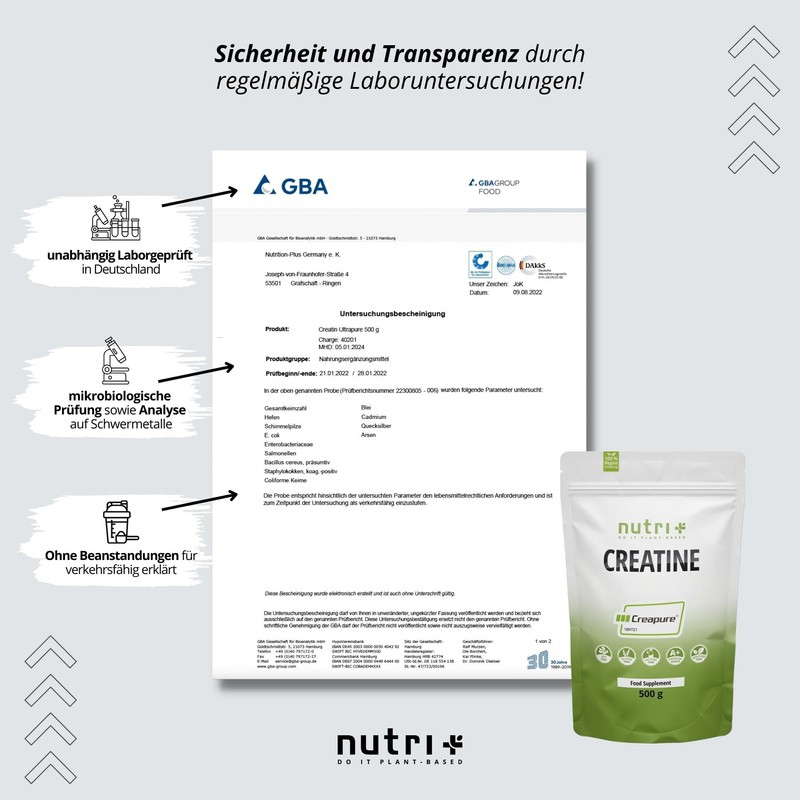 Nutri + Nutri + Creatin 1 kg Creapure - Kreatin Monohydrat Pulver fr mehr Kraft - Creatinmonohydrat hochdosiert, geschmacksneutral + vegan - 1000 g Creatine