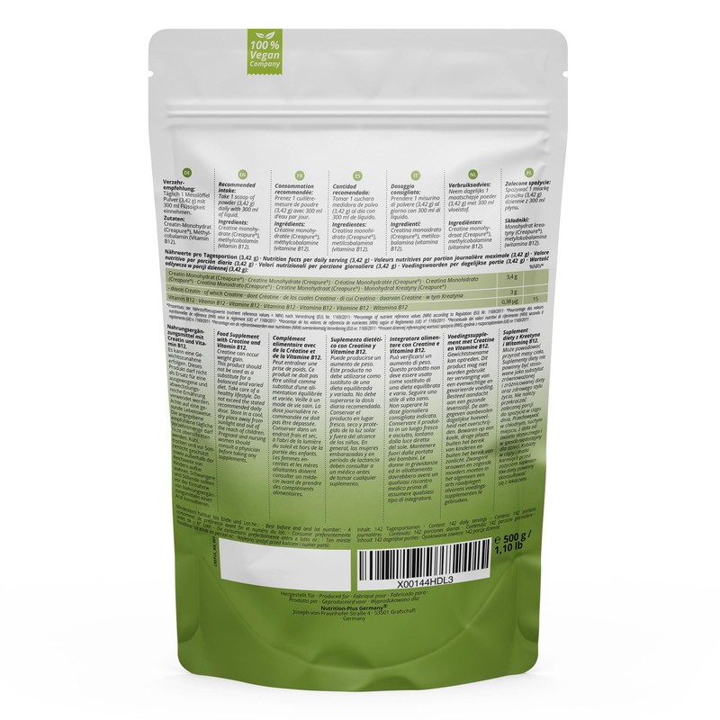 - HOCHDOSIERT: 100% reines, veganes mikronisiertes Kreatinmonohydrat (Creapur) 1000g - optimale L?slichkeit - h?chste Reinheit und Dosierung - Nahrungserg?nzungsmittel mit Vitamin B12 fr einen normalen Energiestoffwechsel