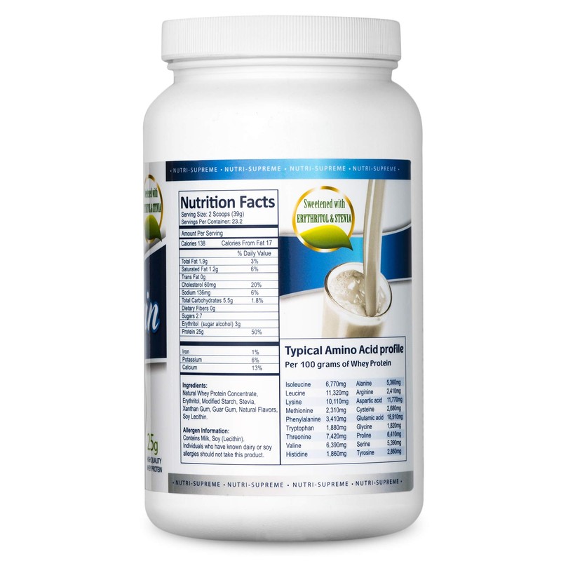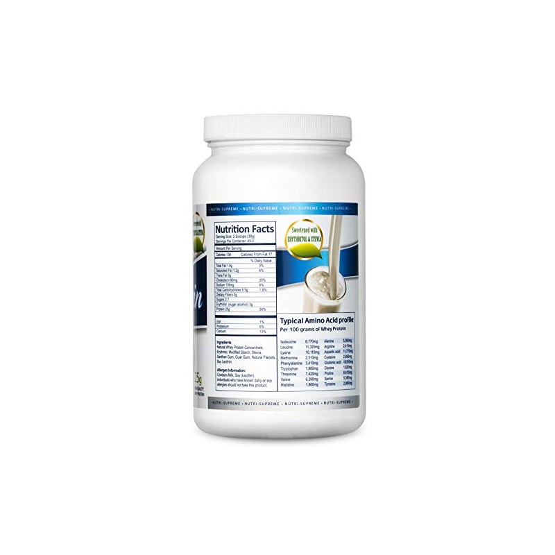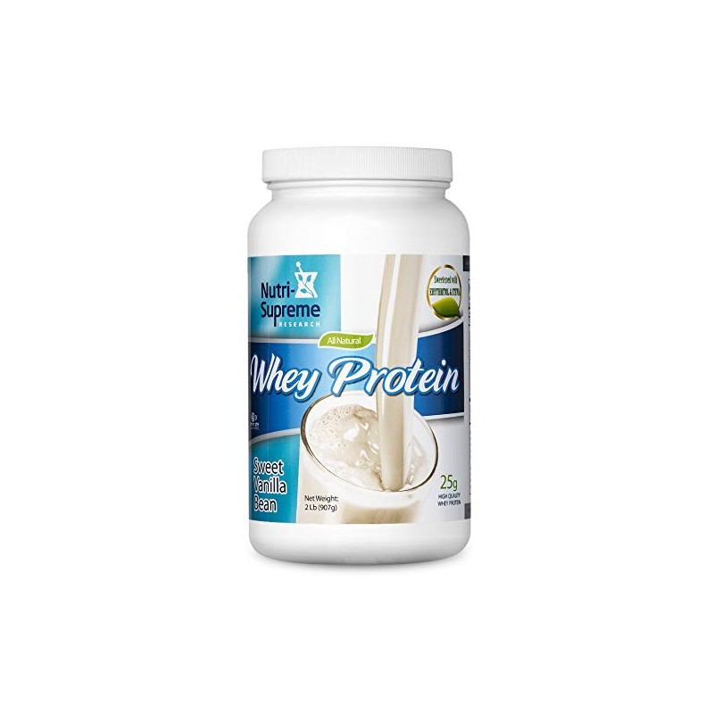 Nutri- Supreme Research Whey Protein Powder Dairy Cholov Yisroel Sweet Vanilla Bean Sweetened with Erythritol and Stevia - 2 Lb - 25 G