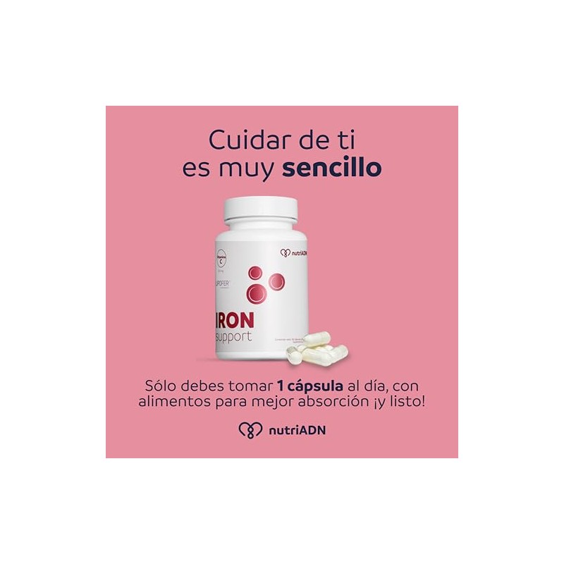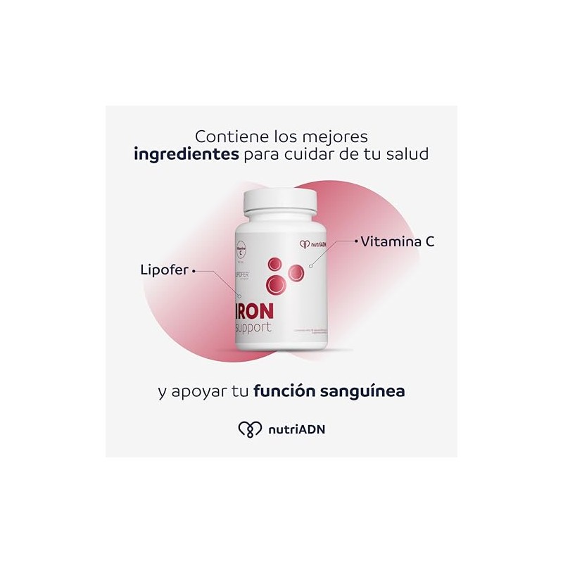 nutriADN – IRON SUPPORT - Hierro Suplemento 90 Cápsulas (20 mg) + Vitamina C (300 mg) + Lipofer - Alta Absorcion, Aumenta la energía