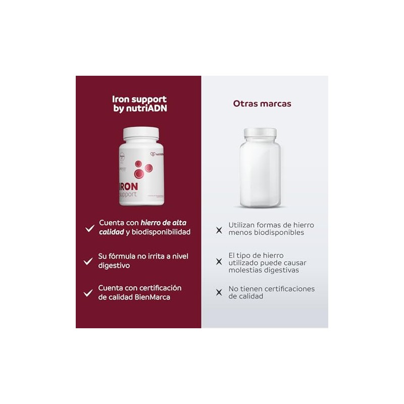 🌟 ⭐ nutriADN – IRON SUPPORT - Hierro Suplemento 90 Cápsulas (20 mg) + Vitamina C (300 mg) + Lipofer - Alta Absorcion, Aumenta la energía ⭐ 🌟