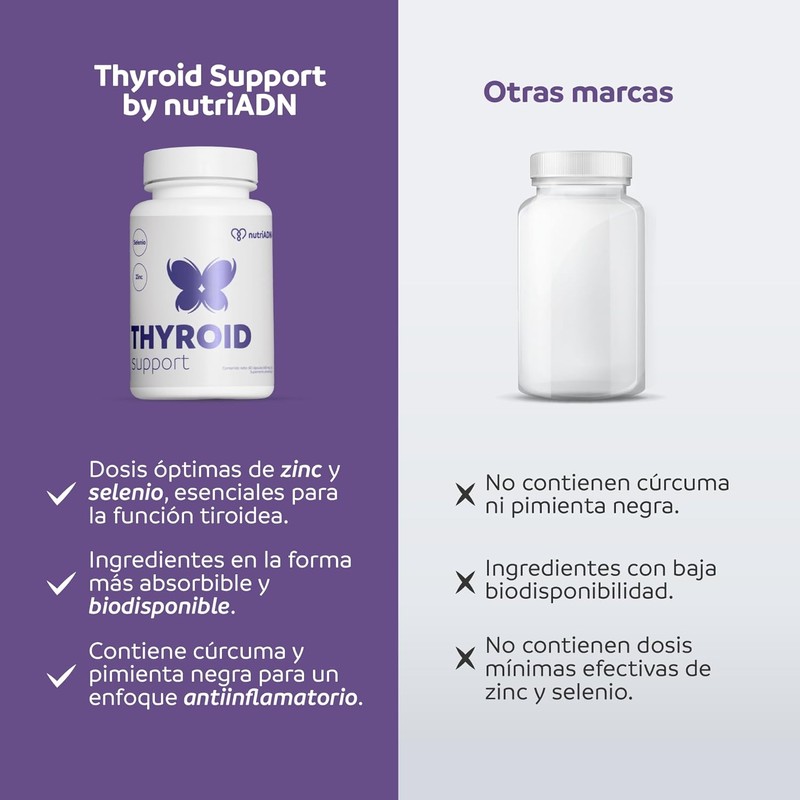 nutriADN - Thyroid Support Suplemento Avanzado 60 Cápsulas con Zinc (7.5 mg) | Selenio (100 mcg) | Cúrcuma (450 mg) para Apoyo Integral de la Tiroides