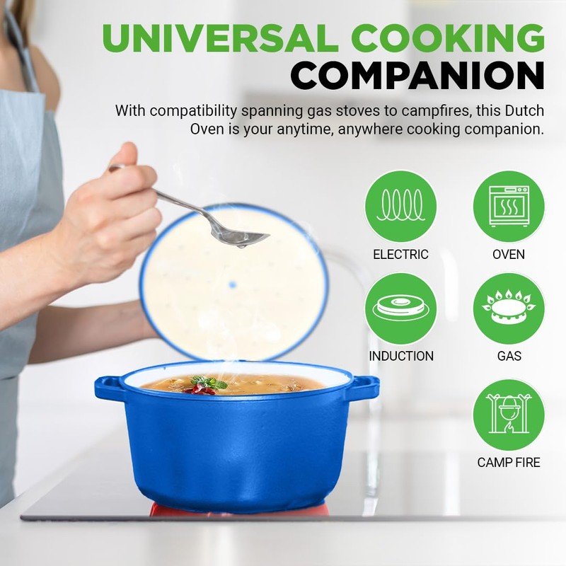 - STYLISH & FUNCTIONAL DESIGN - Elevate your kitchen with a classic 6-quart Dutch oven design, crafted from long-lasting, heavy-duty cast iron. The extra-wide pot accommodates full family meals, while the self-basting ridge-lined lid ensures even cooking.