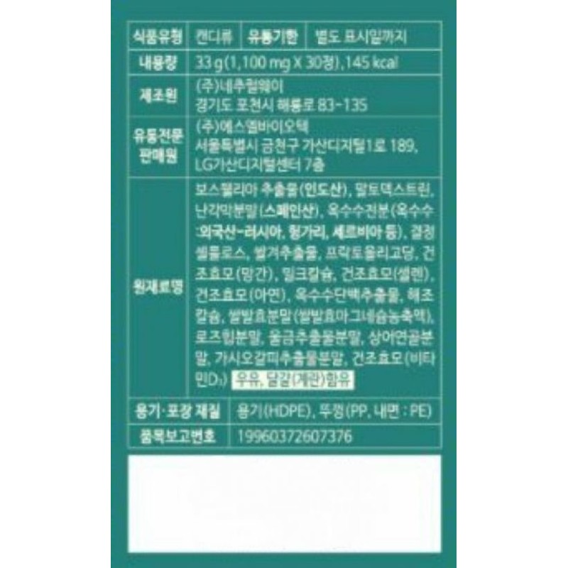 Nutricore Boswellia 1,100mg x 30 tablets x 2 boxes, 2 months supply / 뉴트리코어 보스웰리아 1,100mg x 30정 x 2박스 2개월분