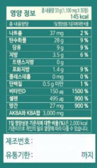 1,100mg x 30정 x 2박스 ( 2개월분 )