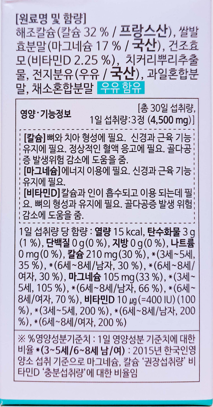 Nutricore Kids Calcium Magnesium D 1,500mg x 90 tablets, 1 month supply, chewable vitamin D / 뉴트리코어 키즈 칼슘마그네슘디 1,500mg x 90정 1개월분 츄어블 비타민D