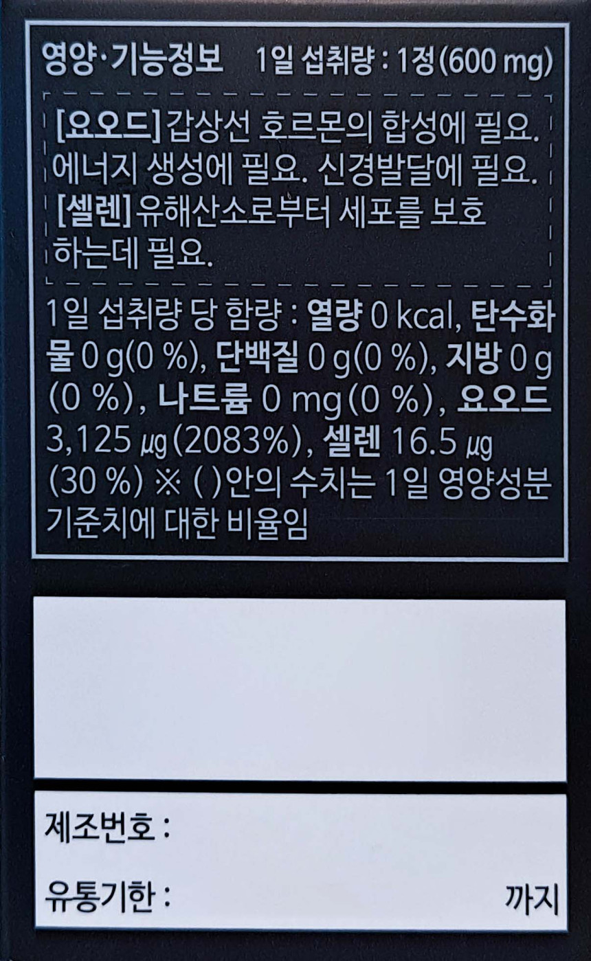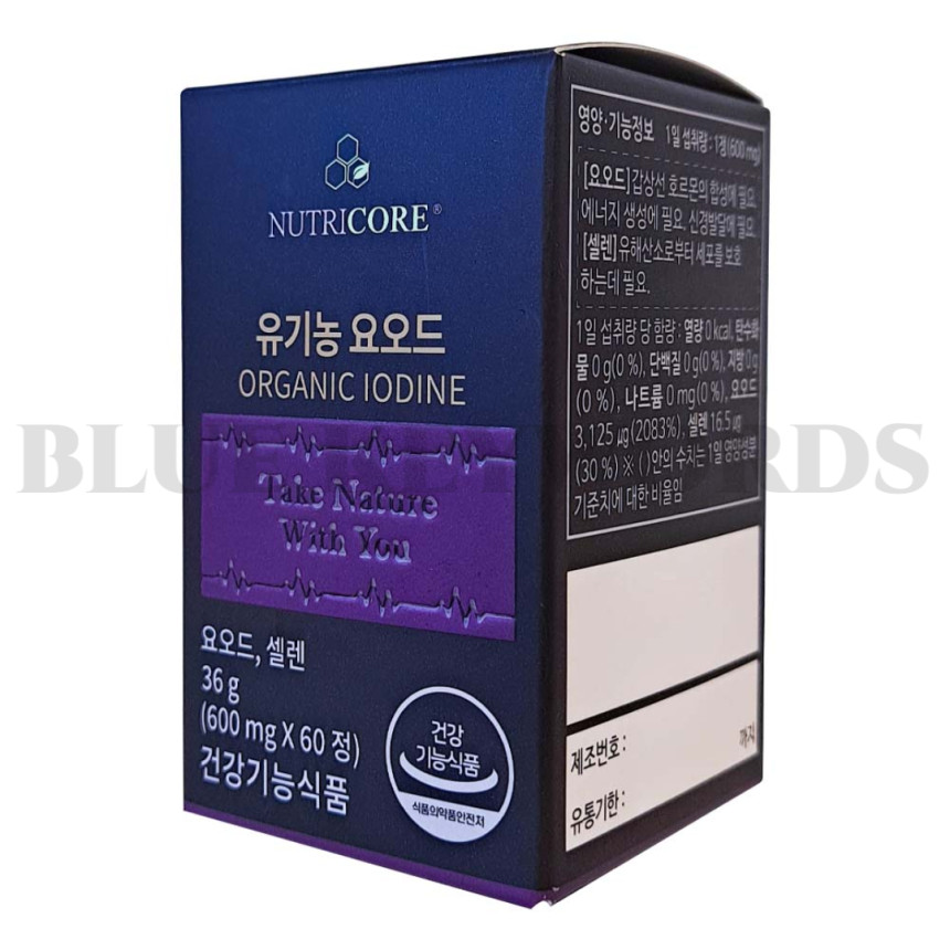 Nutricore Organic Iodine 600mg x 60 tablets, contains selenium for 2 months / 뉴트리코어 유기농 요오드 600mg x 60정 2개월분 셀렌 함유