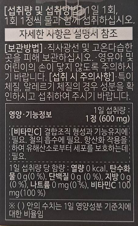 Nutricore Vitamin C 600mg x 60 tablets x 2 boxes, 4 month supply / 뉴트리코어 비타민C 600mg x 60정 x 2박스 4개월분