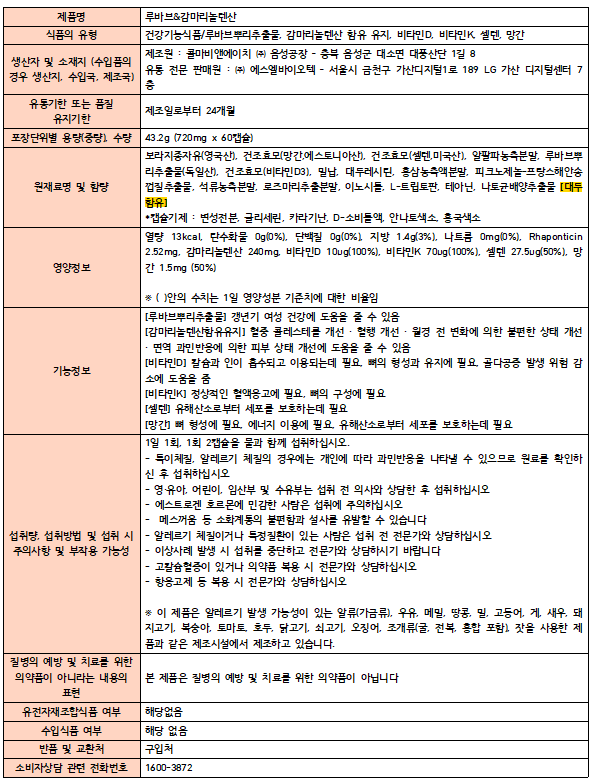 Nutricore WCS Rhubarb & Gamma Linolenic Acid 720mg x 60 capsules x 2 boxes, 2 months supply / 뉴트리코어 WCS 루바브&감마리놀렌산 720mg x 60캡슐 x 2박스 2개월분