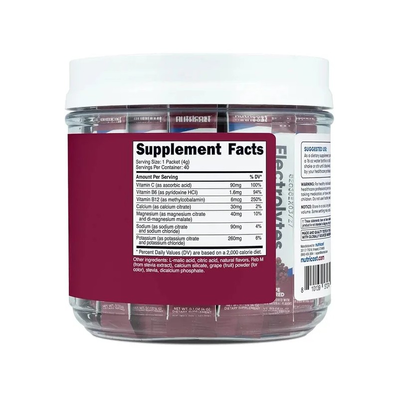 Nutricost Complejo Hidratante Con Electrolitos 40 Sobres Sabor Uva