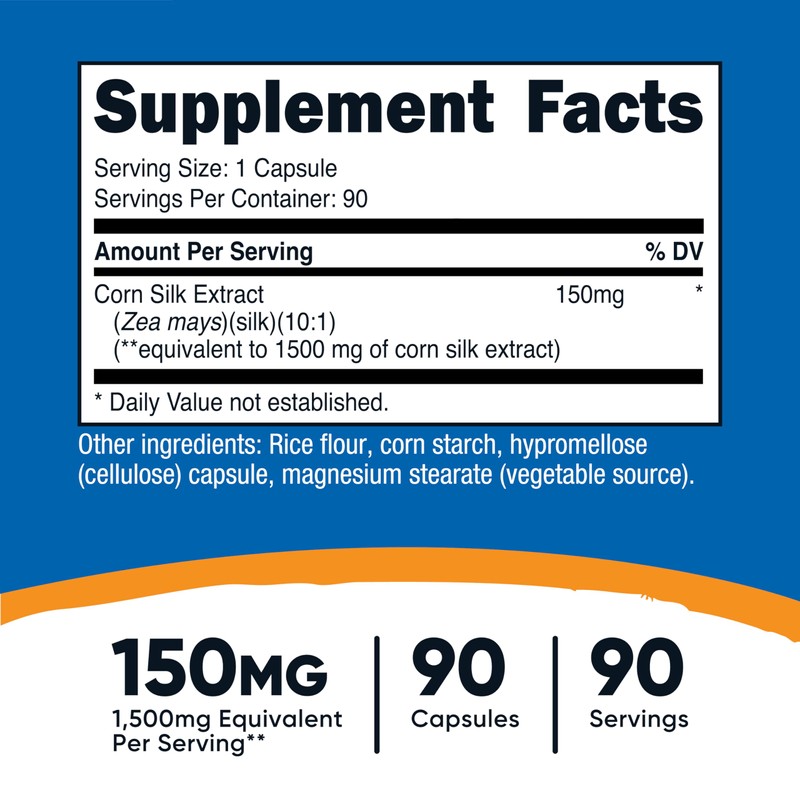 • 150mg of Corn Silk per serving (1,500mg equivalent per serving)