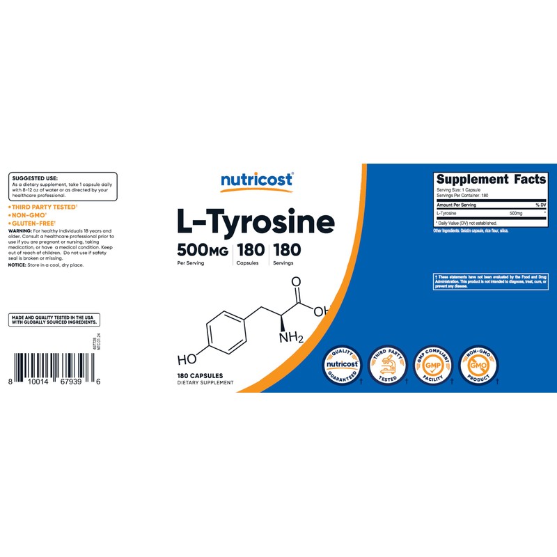 Nutricost Nutricost L-Tyrosine 500mg, 180 Capsules - Gluten Free & Non-GMO