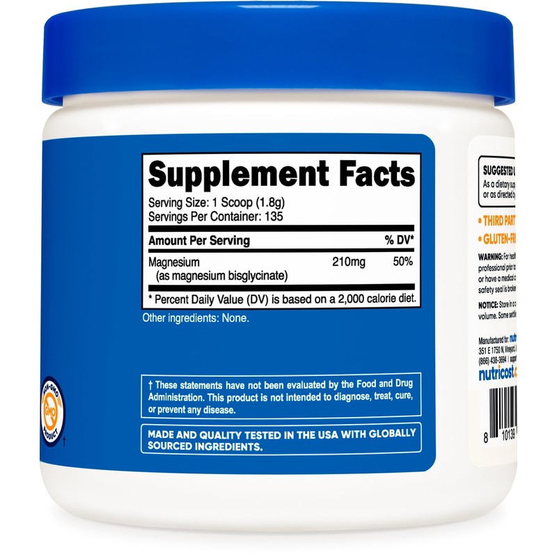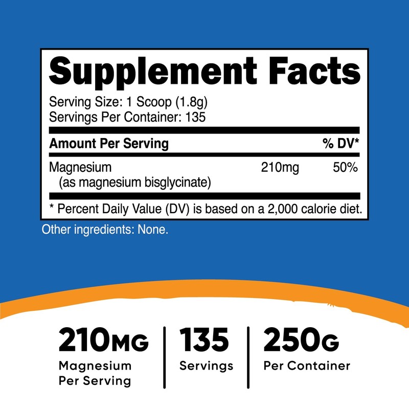• 250 Grams of Magnesium Glycinate Per Bottle (135 Servings)