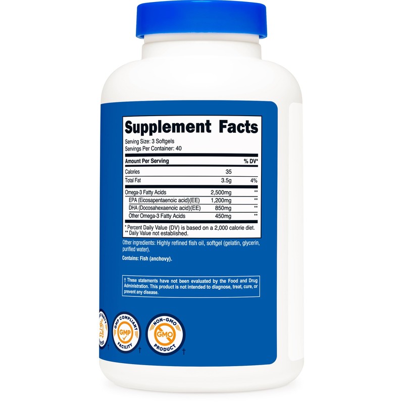 Nutricost Nutricost Omega 3 Fish Oil - 2500MG, 120 Softgels (40 Serv) - Fish Oil, Wild Caught! 1200mg EPA 850mg DHA - Non-GMO, Gluten Free