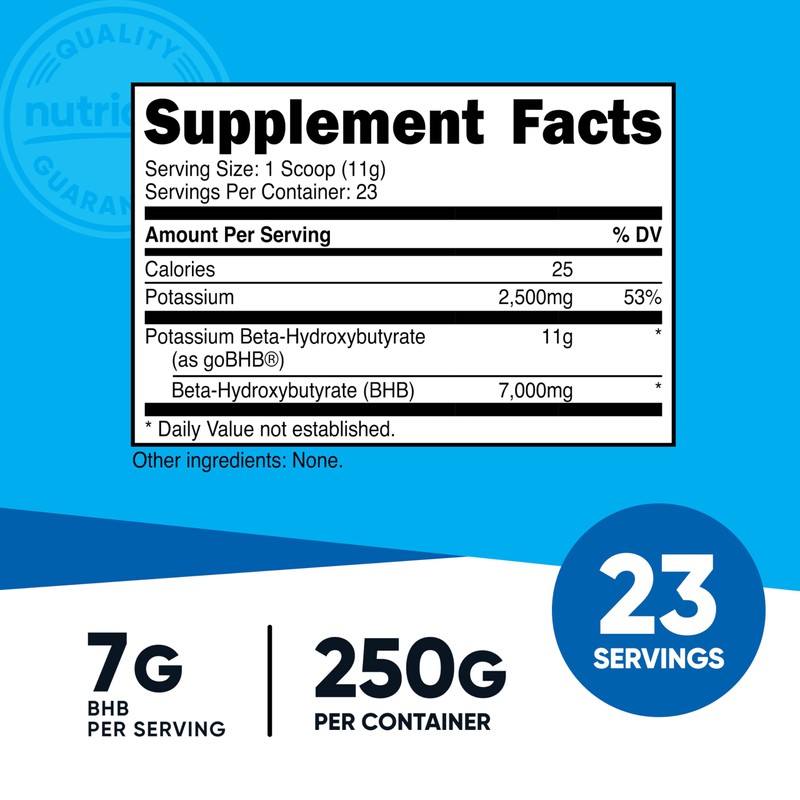 Nutricost Potassium BHB Salts, Exogenous Ketone Supplement, 6.4g Beta-Hydroxybutyrate Per Serving, 250 Grams