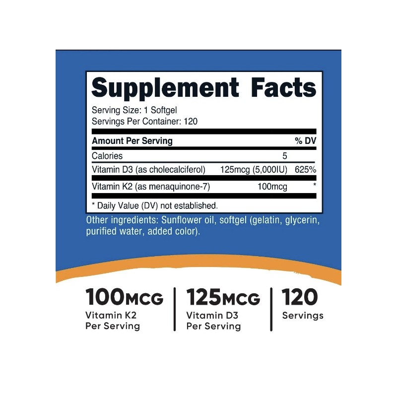 Ingredients : Vitamin D3 (Cholecalciferol), Vitamin K2 (Menaquinone)