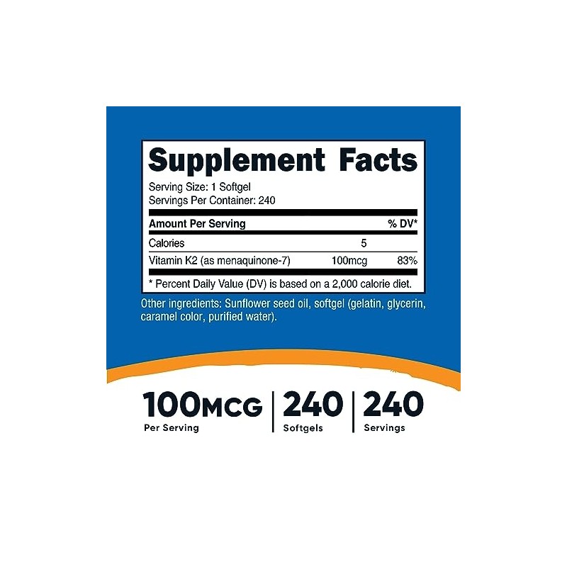 • 100mcg of Vitamin K2 in every serving - 1 Serving: Just 1 Softgel