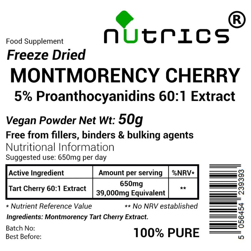 Nutrics® 50g Montmorency Tart Cherry Extract Powder 5% Proanthocyanadins - 100% Pure - No fillers Binders or Bulking Agents