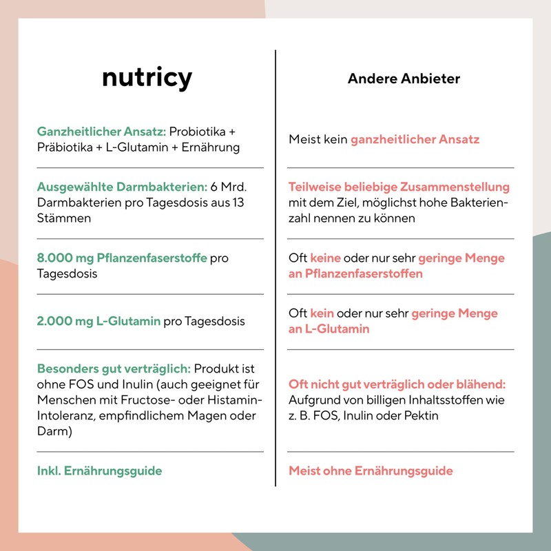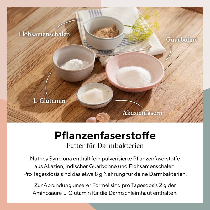 - ✅ FÜR DEN DARM – Nutricy Synbiona vereint ausgewählte Darmbakterien mit hochdosierten Pflanzenfaserstoffen und der Aminosäure L-Glutamin – optimal für die Darmflora