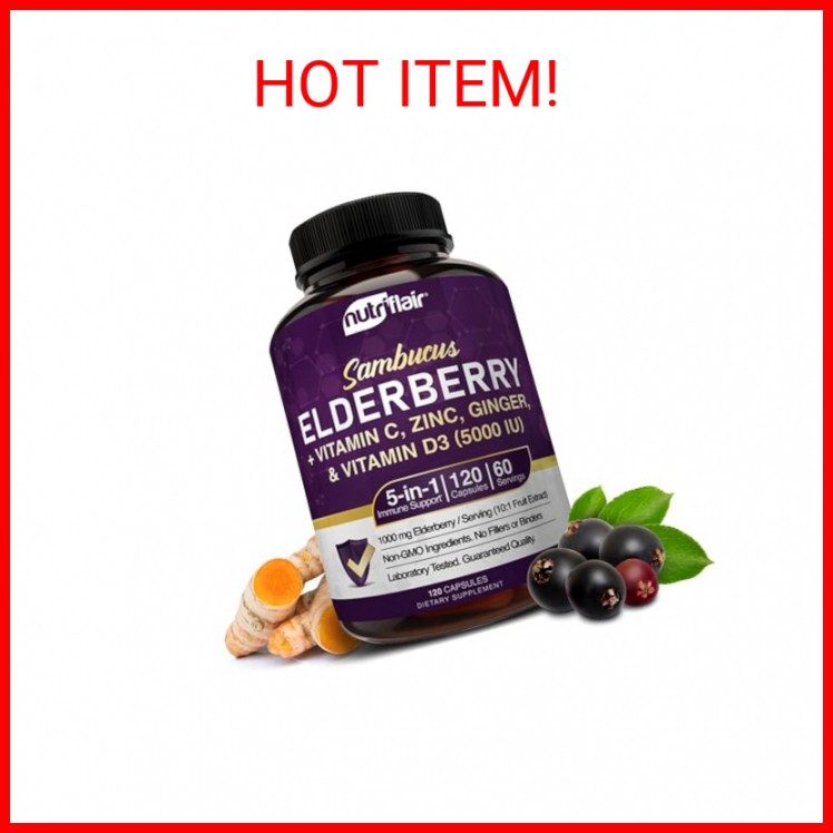 NutriFlair Sambucus Elderberry, 120 Veggie Capsules - 5 in 1 Immune Support and