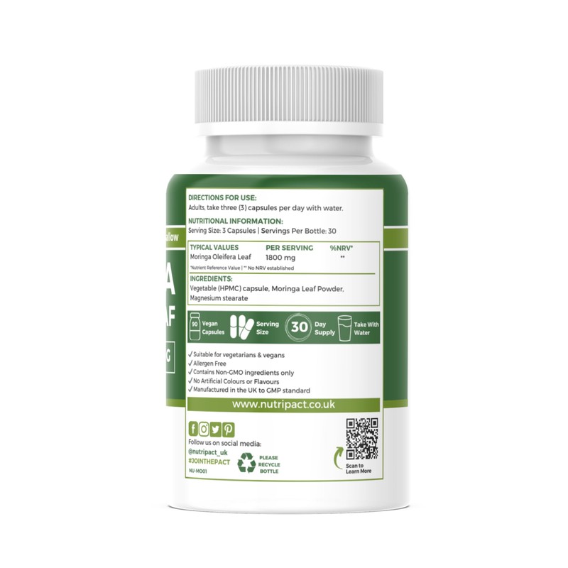 - MADE IN THE UK - Our Pure Moringa supplement is made right here in the UK using only the finest ingredients - our products are free from Gluten, Dairy, GMO ingredients, and are vegan friendly.