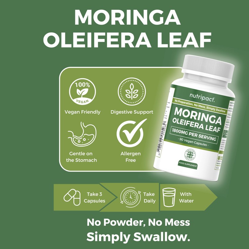 nutripact Nutripact Moringa Oleifera Capsules - 1800mg per Serving - Pure Moringa Powder Supplement (not Tablets) - 90 Vegan Caps - High Strength Moringa