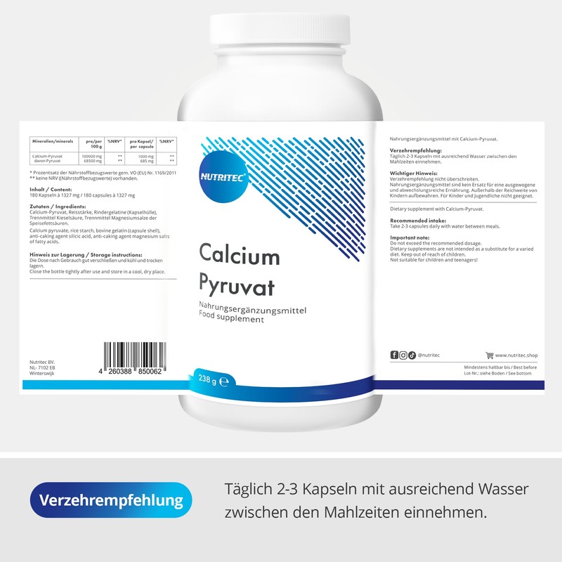 - Supportive: with the capsules you can cover your daily calcium pyruvate requirement ideally and are adequately supplied with the mineral.