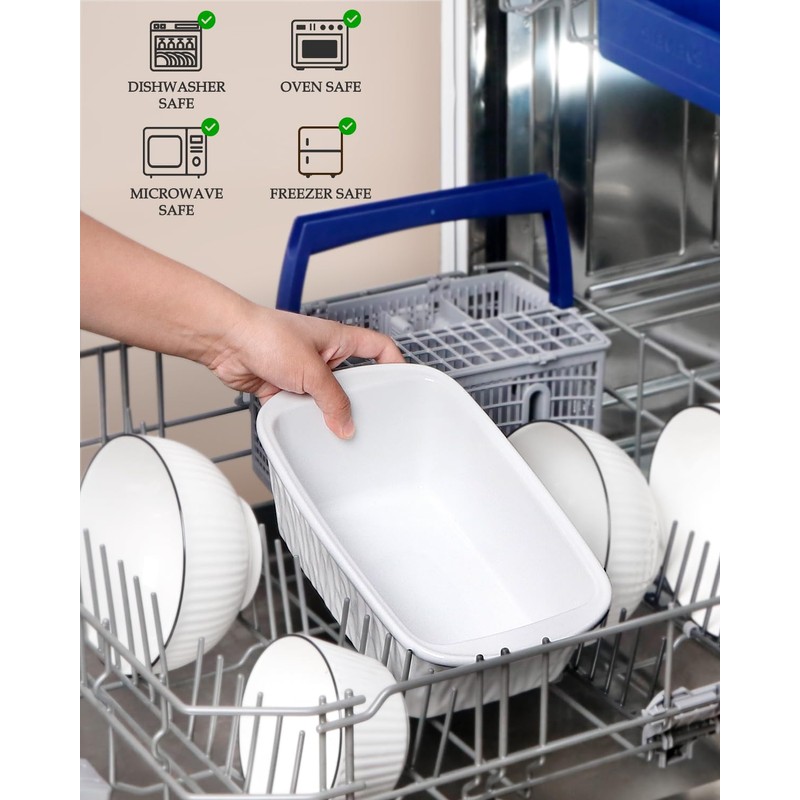 NUTRIUPS 9 x 6 inch Loaf Pan, Rectangular Ceramic Bread Loaf Pan for Baking, Porcelain Nonstick Baking Bread Loaf Pan, Bread Baking Pan White