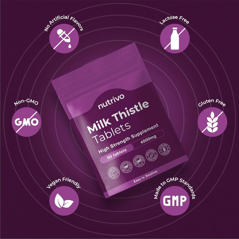 Nutrivo Milk Thistle Tablets 4000mg – High-Strength Herbal Supplement – 90 Tablets (3-Month Supply) – Vegan-Friendly, UK Made, and an Alternative to Capsules, Drops, and Tinctures