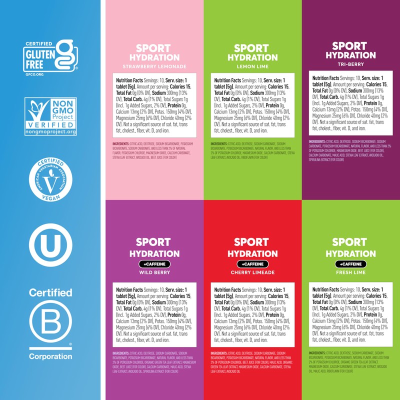 - MADE WITH CLEAN INGREDIENTS (2): Nuun Sport hydration tablets have 1g of sugar and are non-GMO; vegan and gluten-free; Nuun is proudly B-Corp Certified