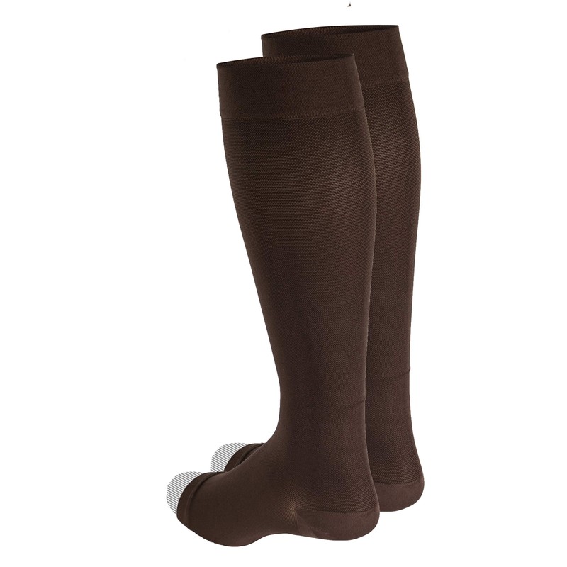 NuVein Medical Compression Stockings, 20-30 mmHg Support for Women & Men, Knee Length, Open Toe, Brown, Medium