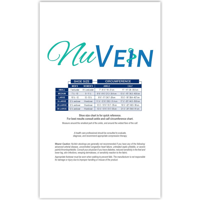 - NuVein 20-30 mmHg extra strength compression; Firm support for progressive symptoms