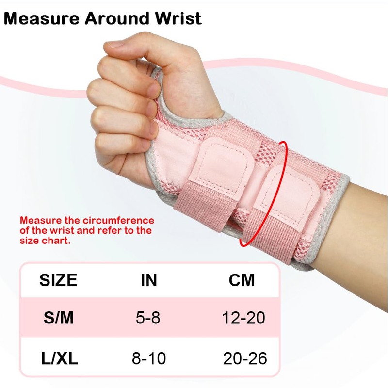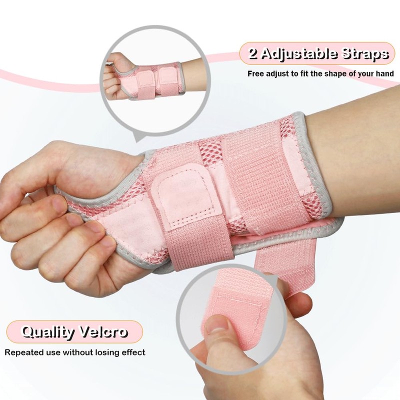 NuVigor Wrist Support Splint Brace,Right Left Hand Wrist Brace Carpal Tunnel for Men Women,Night Wrist Sleep Splints with Adjustable Straps for Arthritis,Pain Relief(Pink-Gray,Right and Left,S/M)