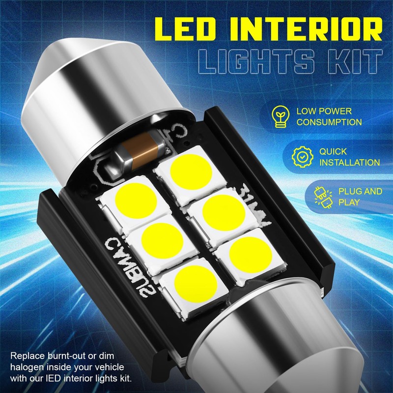 - 【Pure White (5500K) 】Replace original Interior Lights, offer a 300% brighter pure white view in your car, all led bulbs are quality made & ultra bright
